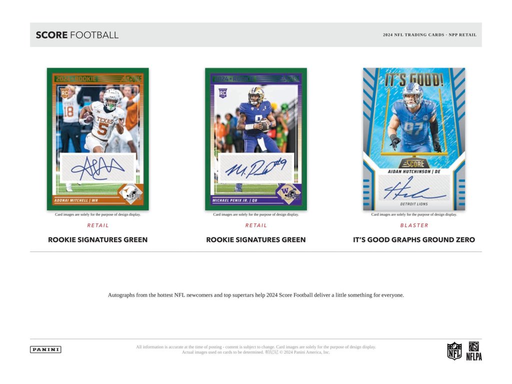 Autogramy od nejžhavějších nováčků NFL a top superhvězd pomáhají 2024 Score Football přinést něco pro každého.