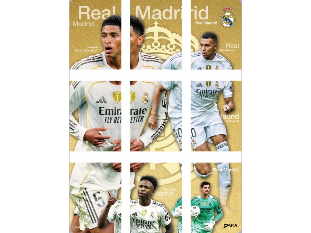 2025-26 Daka Top Audience Real Madrid Box obsahuje 24 karet (6 balíčků po 4 kartách).