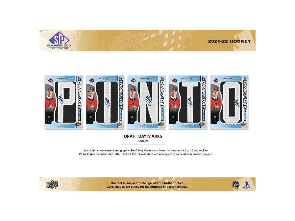 Hledejte novou vlnu velmi populárních Draft Day Marks limitovaných u současných hráčů do /10 a u nováčků do /35 ( manufactured letter patch). Navíc, každé písmenko obsahuje hard-signed podpis.