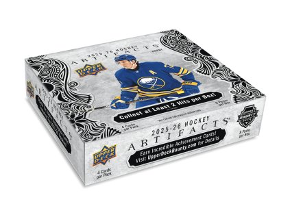 2025-26 Upper Deck Artifacts Hockey Hobby Box obsahuje celkem 32 karet (8 balíčků po 4 kartách) KAŽDÝ BOX PRŮMĚRNĚ OBSAHUJE: - 4x limitovanou Base Set/Base Set Parallel...