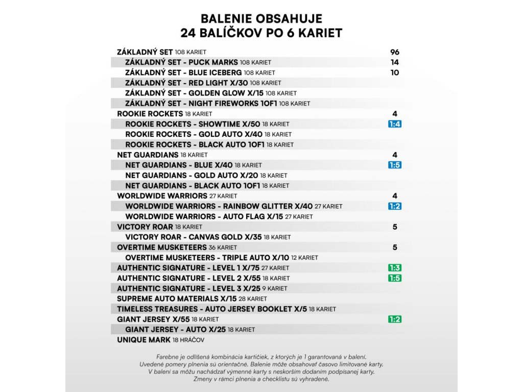 V náhledu produktu najdete přiložený obrázek, který zobrazuje garantovaný obsah Retail boxu a poměr vložení karet do balení.