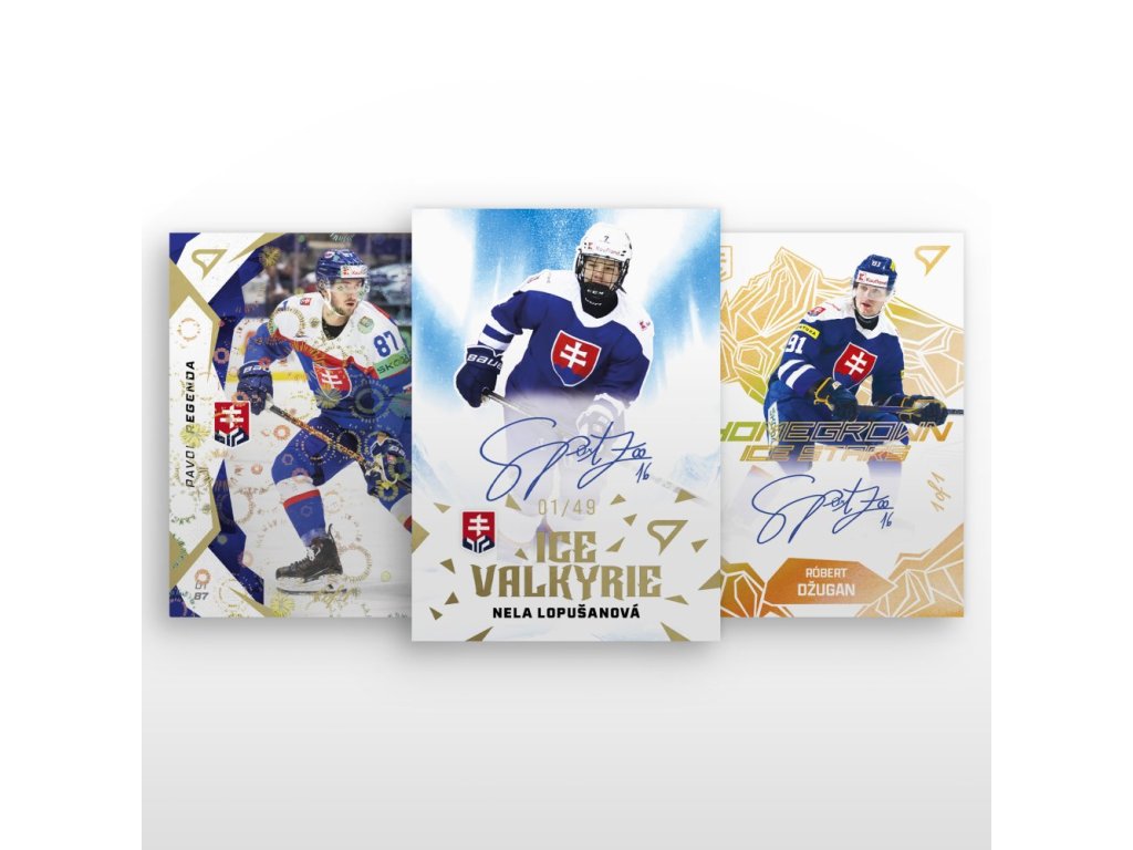 - kartičky s originálním podpisem Signed Stars Level 1 x/35, Team 20 Auto x/35, Ice Valkyrie x/49 nebo Homegrown Ice Stars Blue Auto x/35